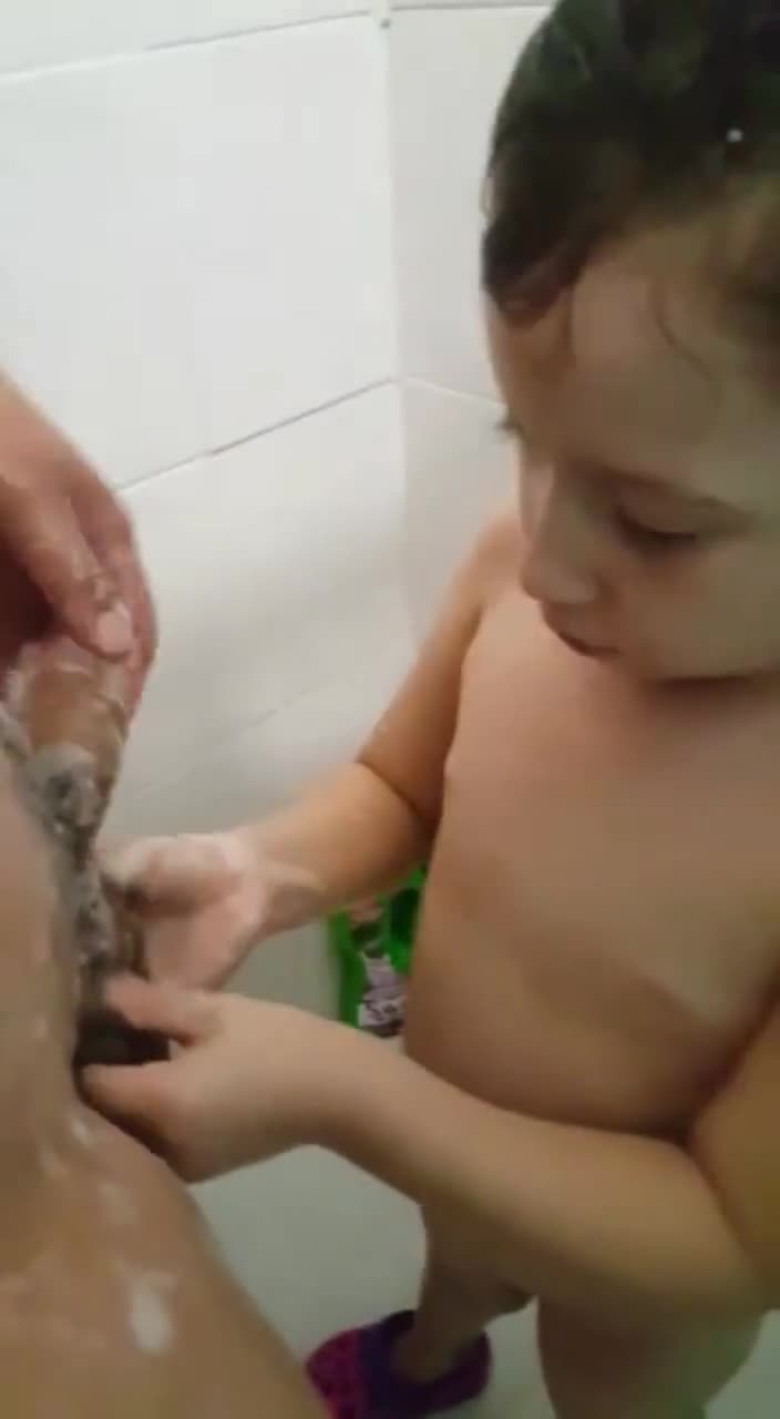 小可爱帮爸爸洗澡