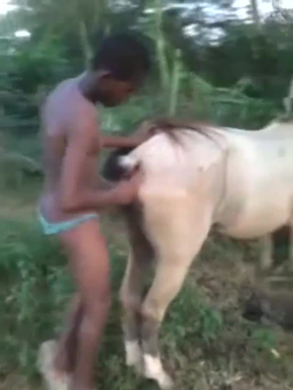 2男子怼马,不怕被踢爆蛋蛋吗