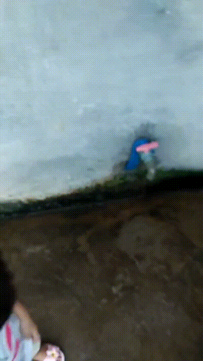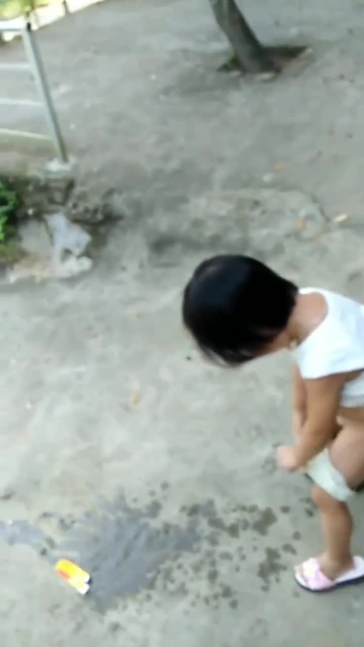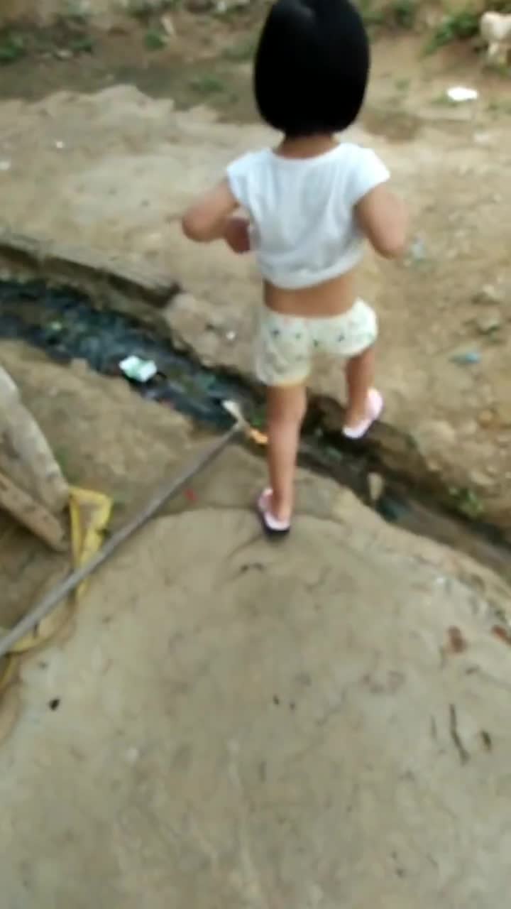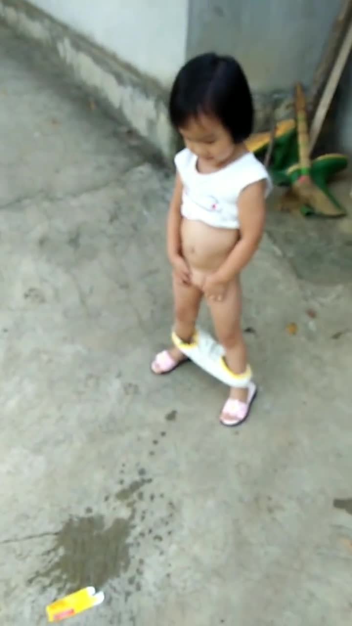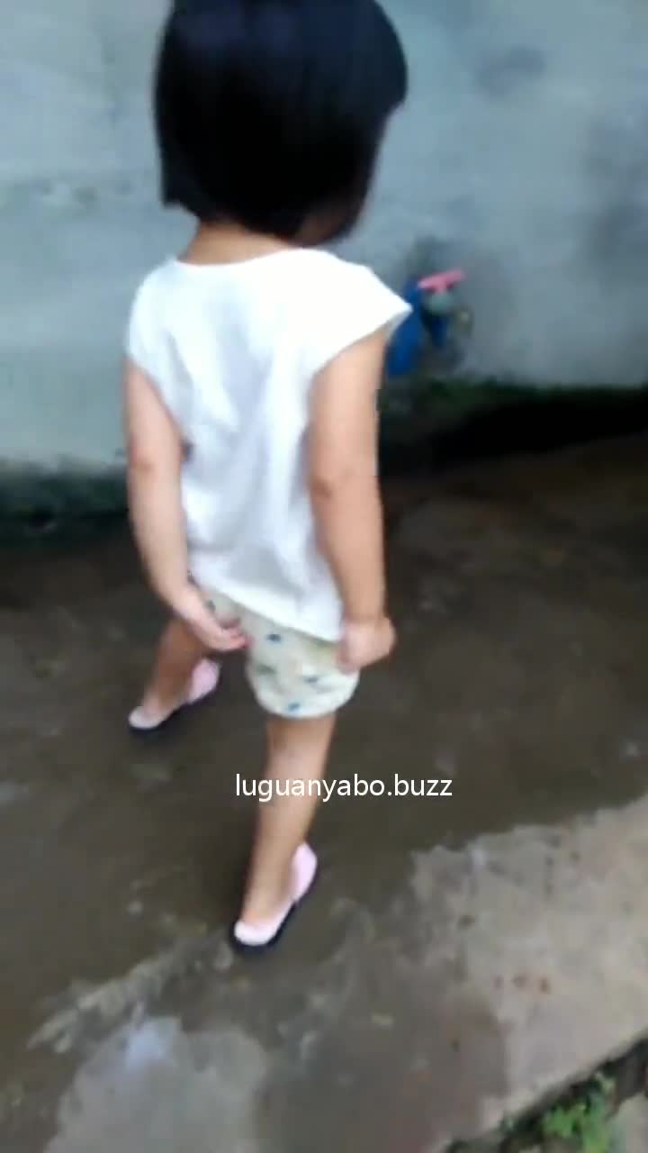 小女孩站着喷金水