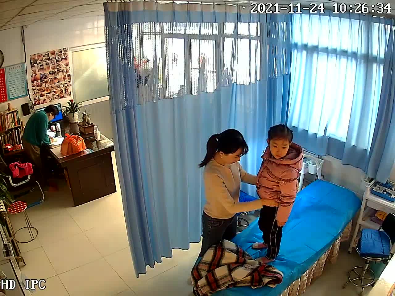 妈妈带小女儿检查BB